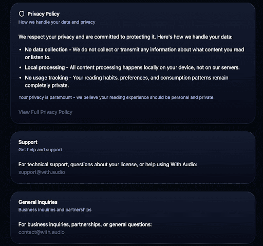 By keeping the AI local, WithAudio solves the two biggest complaints regarding modern tech: privacy and connectivity. Your sensitive documents never leave your device, ensuring total privacy. Furthermore, because it doesn’t rely on an internet connection for playback, WithAudio works perfectly in “dead zones,” whether you’re on a long-haul flight or a remote commute.